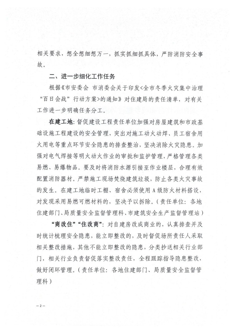 关于进一步细化全市住建系统冬季火灾治理“百日会战”行动的通知