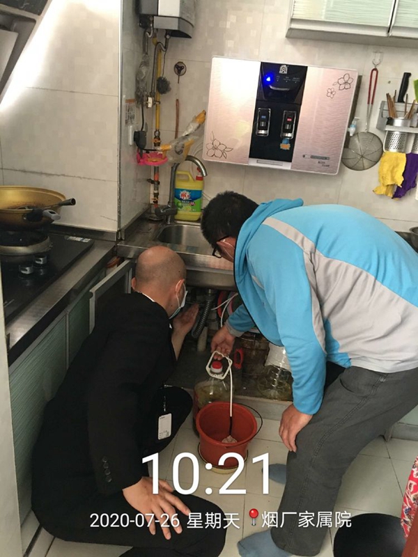 “工程刘”对九号楼四单元外墙水管漏水问题检修并与业主商量解决方案