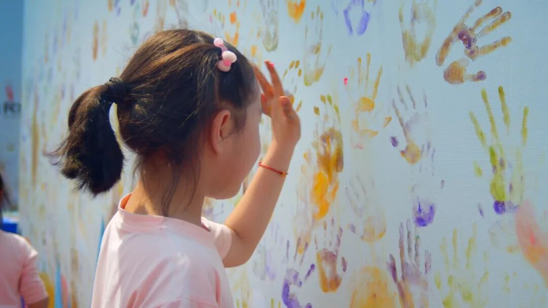 签到也能玩出新花样!入场时特别设置了掌印树签到墙,大手牵小手,大家纷纷用五颜六色的颜料在活动背景板上留下自己的掌印,海报上很快便开满了色彩缤纷的“掌印花”。这独特的“签到”方式充满了童趣,不仅受到小朋友的热烈欢迎,很多家长也在墙上留下了自己的掌印。
