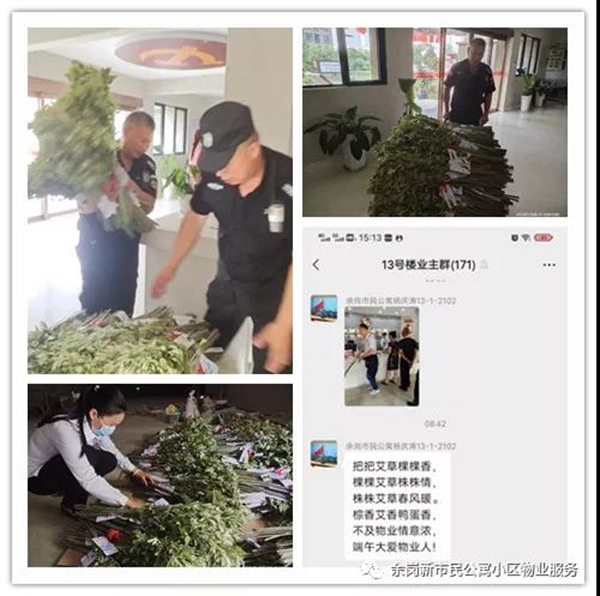 为使小区居民度过一个温馨难忘的端午佳节。物业工作人员特意邀请业主前来物业服务中心领取艾草,为业主朋友送上香浓的“爱”,业主朋友们个个心花怒放,纷纷称赞,并表达了真诚的感谢,说:“端午节传统要挂艾草,这下可以回家挂起来了,物业工作人员对我们业主的服务真是太好啦”!