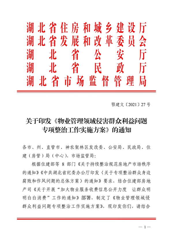 关于印发《物业管理领域侵害群众利益问题专项整治工作实施方案》的通知