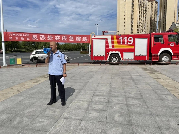 为全面提高民发物业秩序队伍在面对突发暴恐事件的防范意识及处置突发事件的能力,9月8日民发物业邀请六两河派出所干警现场观摩指导,警企联合进行反恐处突演练。