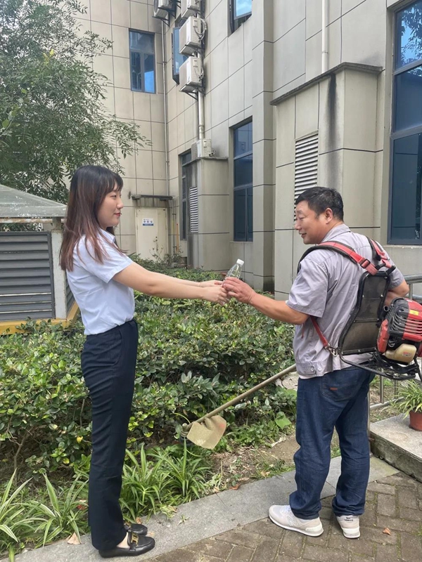 丝丝清凉意,关怀沁人心。活动中,综合管理部赶赴各项目,向一线员工送上金银花露等防暑降温物品,对他们不畏高温、坚守岗位、默默奉献的精神表示感谢,叮嘱大家在做好工作的同时,要注意防暑,保重身体,提高自我保护意识,为广大职工送去了丝丝凉意。