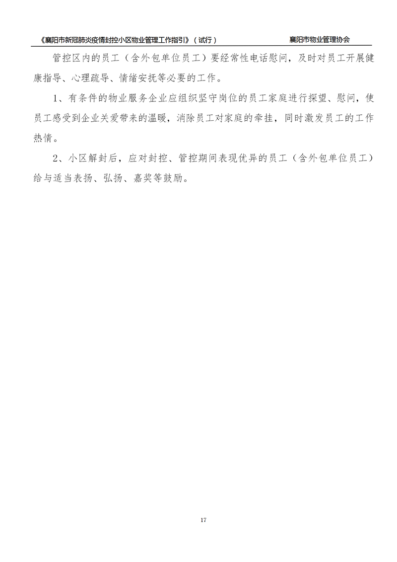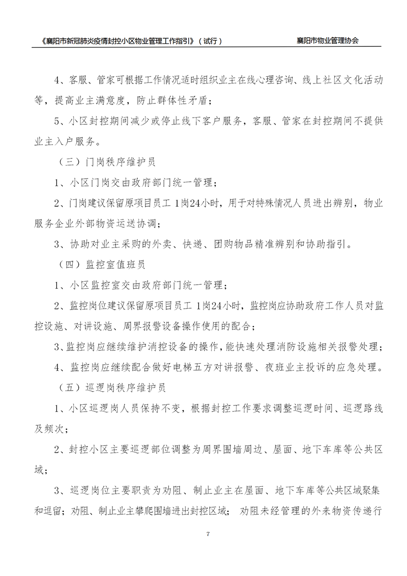关于印发《襄阳市新冠肺炎疫情封控小区物业服务管理工作指引》(试行)的通知