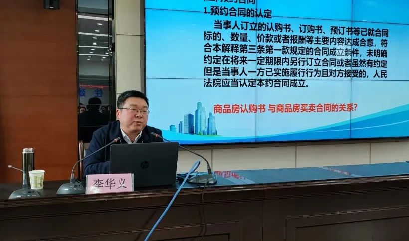 2月26日,湖北文理学院政法学院副教授、硕士研究生导师李华义以《民法典合同编通则司法解释对房地产业务的影响及应对》为主题,围绕合同的必备条款、合同的效力、合同的履行等3个方面,结合典型案例,用浅显易懂的语言,深入浅出地为大家阐述了签订购房合同时的注意事项以及履行合同等有关问题,具有很强的指导性和实用性。